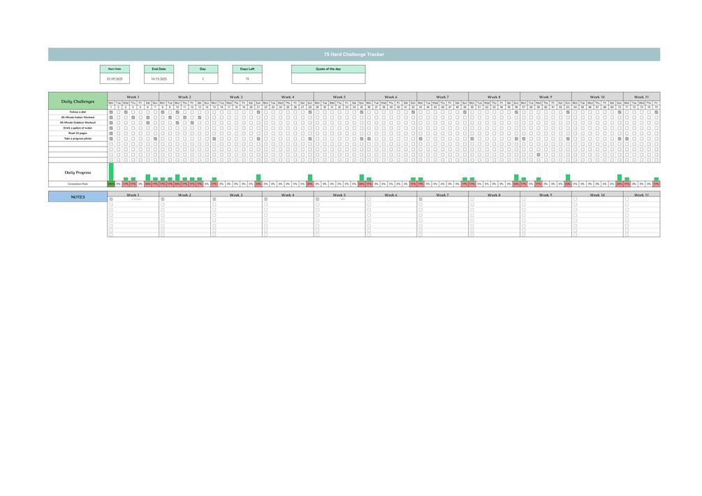 ✔️ “75 Hard isn’t just a challenge — it’s a test of discipline and consistency. Most people quit early, not because they’re weak, but because they lose track. This tracker keeps you accountable so you can finish strong”