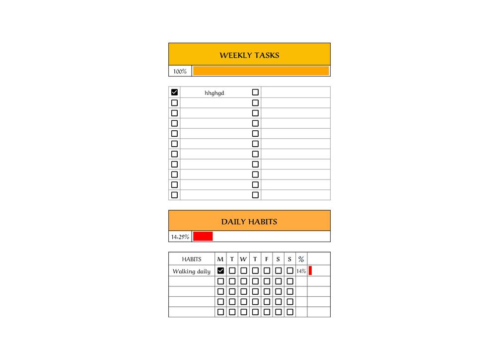 ✔️ Tracking your Weekly tasks and daily habits (progress %)