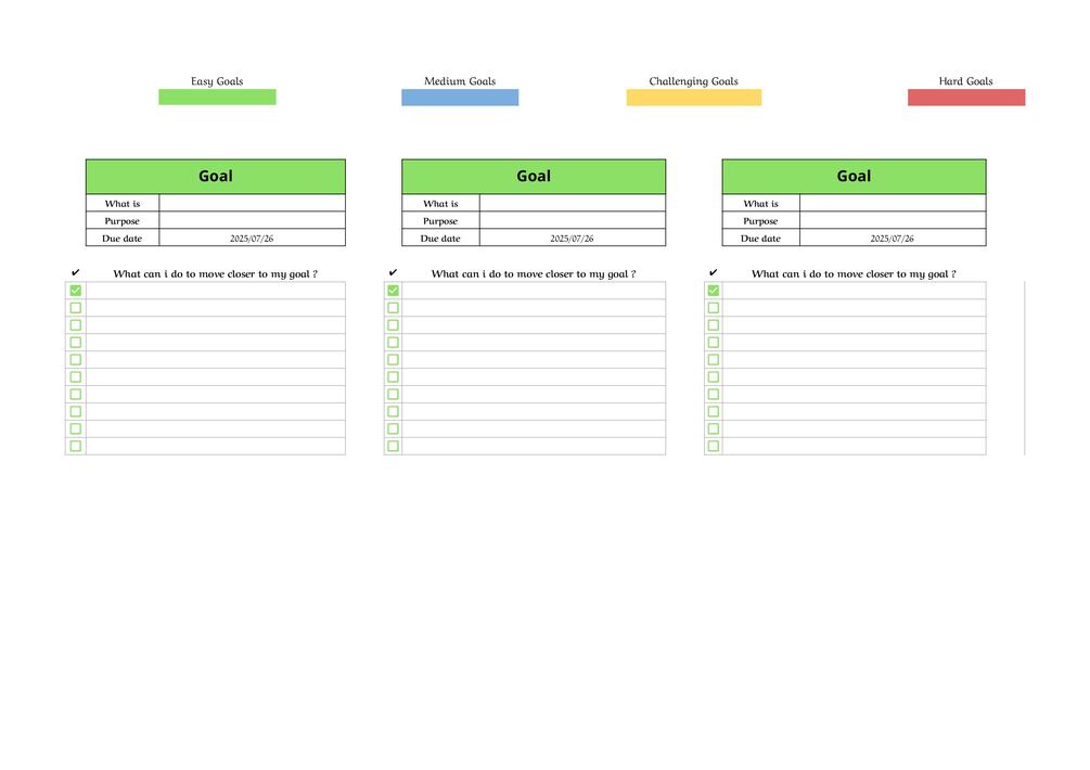 Not all goals are equal. That’s why this tracker helps you break them into levels of difficulty — so you never feel overwhelmed and always know the next step.